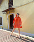 The dazzling solid bright orange hue is a testament to your zest for life. It radiates energy and positivity, making it the perfect choice for your daytime escapades. Whether you're meeting friends for a sunny brunch, exploring a new city, or simply enjoying a leisurely stroll, this dress is your go-to companion. Style your look by adding your favourite accessories – a wide-brimmed hat, a chunky bracelet, or comfy sneakers – and you're ready to take on the day in style.