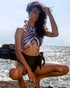 This halter top, along with our High Waist Bottoms, is a pair that sets the bar of chic and urbane fashion high. This set is boldly matched with our signature print of the collection- Mayan Jungle on the top and modern black on the bottom. This luxurious set is meticulously handcrafted and designed with innovative, eco-friendly materials, ensuring minimal environmental impact and low carbon footprint