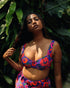 Our Oriental Poppy Wired Bikini Top has a flattering classic cut with small ruched detail at the bottom to sculpt your bust. The supportive cups are further reinforced with adjustable thick straps, suitable for bigger bust sizes too. Pair this with any of our Oriental Poppy bikini bottoms and even our Oriental Poppy High Waist Satin Trousers.