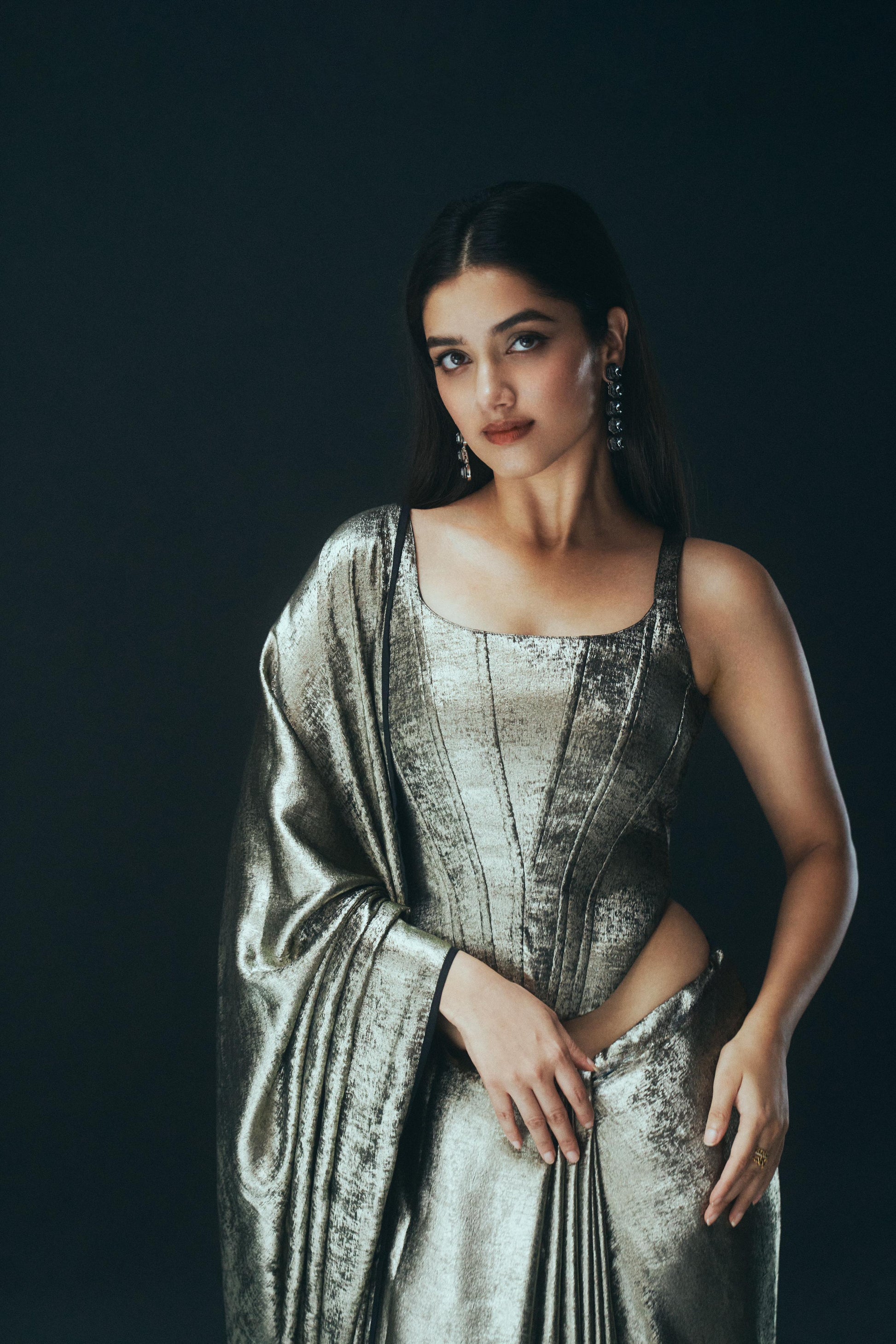 This saree comes as an open saree, allowing you to drape it in your own unique style. If you prefer a pre-draped version, you can get in touch with our team and we’ll be happy to assist you.
