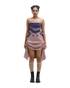 A sculpted denim corset with a ombré fade, sharp angular hems, and a structured silhouette. Paired up with Ruch hour skirt is equipped with adjustable drawstrings, lets you play with the hemline, wear it full-length or shorter. you can easily adapt the skirt to suit your comfort and mood.