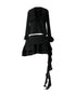 Black, full bell sleeved top with a deep V neck and tie detailing. Tie it as you like or leave the long string hanging. A little sexy and a little flirty, this tie top looks hot with our ruffled black skirt.