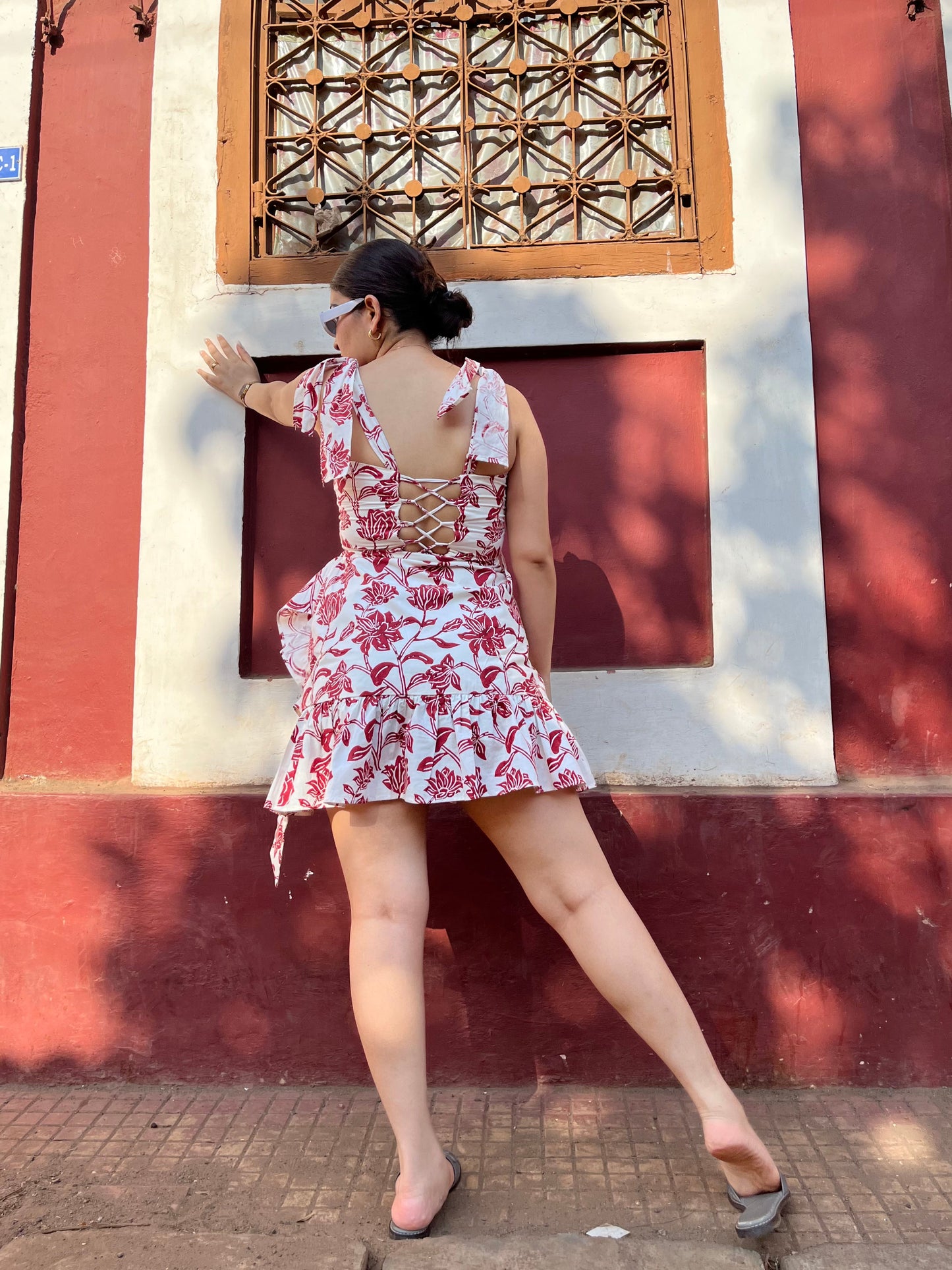 Indulge in the allure of classic elegance with our White Dress adorned in a captivating red floral print. This dress effortlessly marries the grace of simplicity with the charm of nature, creating a look that is both timeless and contemporary.
