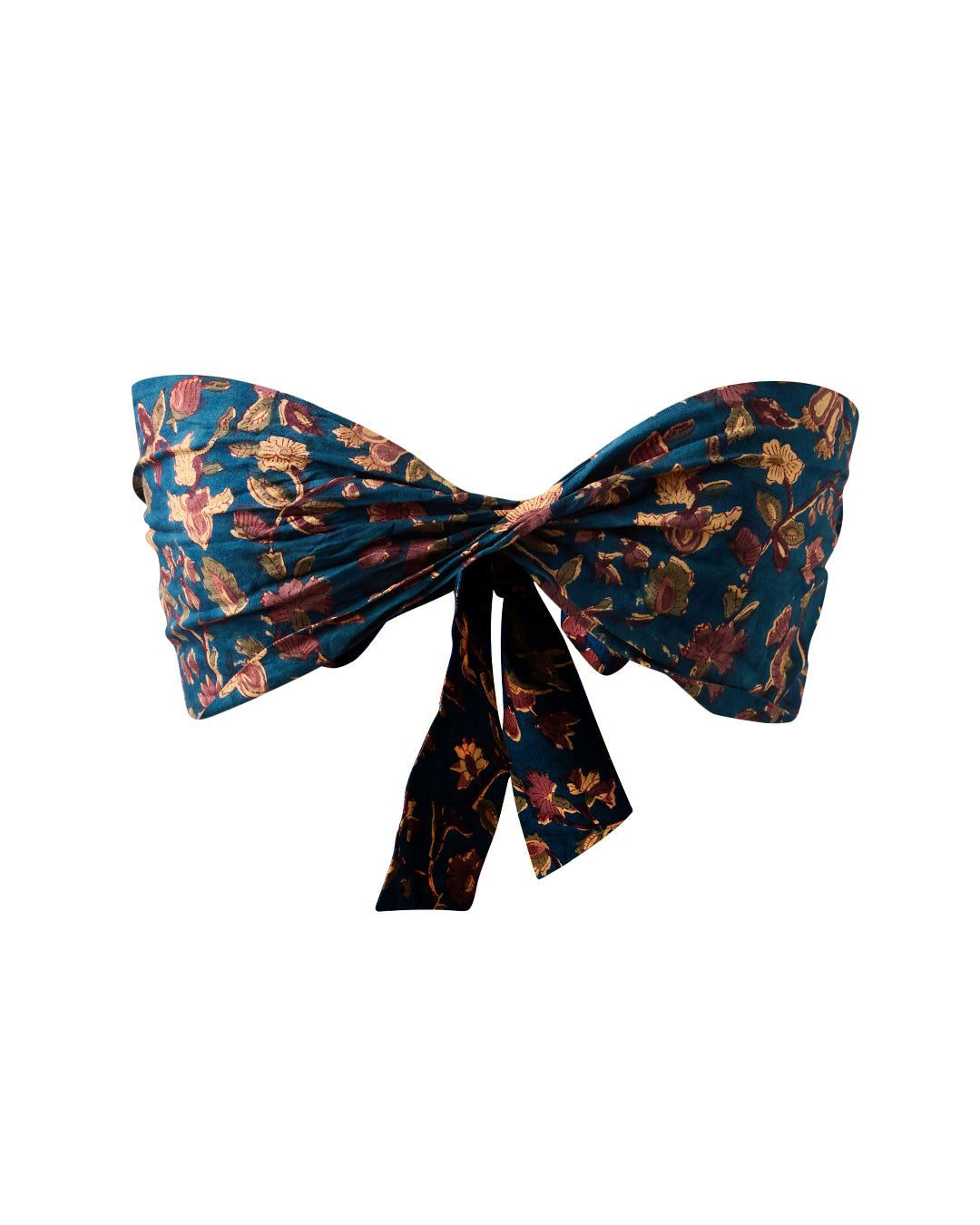 Soak up the sun in style with our Sunbathing Hand Block Printed Cotton Bandeau Bikini Set - Moss. Crafted from 100% natural cotton, our fabric is soft, breathable and quick-drying. The cotton is sustainably sourced using traditional hand block printed using natural dyes from Rajasthan, India. The bandeau bikini top has a knot in the middle and a back tie so you can customize the fit to your comfort. The matching string bikini bottoms have side ties that allow you to adjust the coverage. Both pieces are fully lined for comfort. The same is available in two other block printed designs, Sunbathing Hand block printed Cotton String Bikini Set - Eden and Sunbathing Hand block printed Cotton String Bikini Set - Mughal Vines. You can wear this with our matching print shirt Hand block printed Cotton Shirt - Moss.